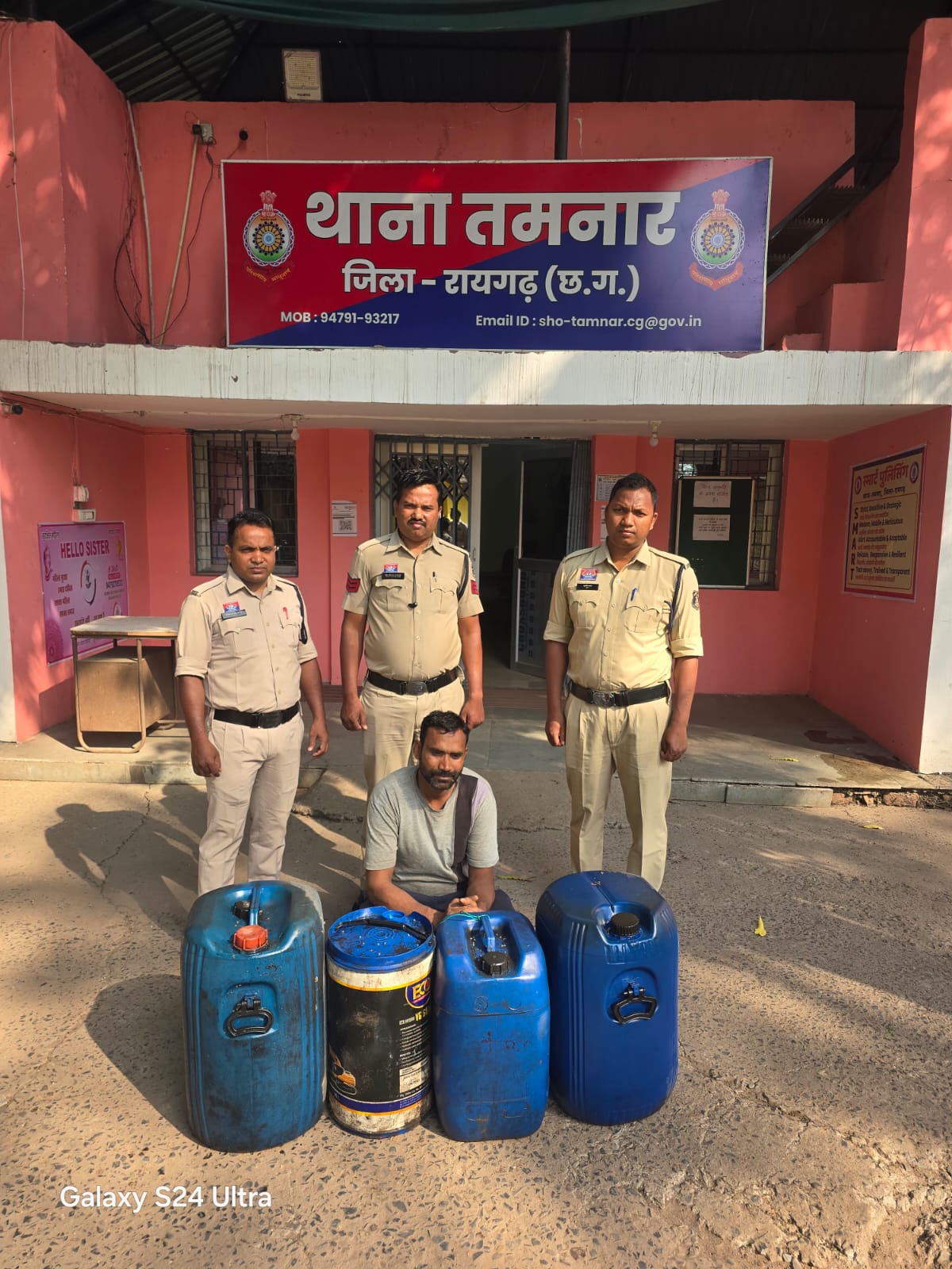 *रायगढ़, 17 अप्रैल* । वरिष्ठ पुलिस अधीक्षक श्री शशि मोहन सिंह के दिशा निर्देशन में जिले में चलाए जा रहे विशेष अभियान के तहत तमनार पुलिस द्वारा अवैध रूप से ज्वलनशील पदार्थ के भंडारण पर कार्रवाई की गई है। एसडीओपी धरमजयगढ़ श्री सिद्दांत तिवारी के नेतृत्व एवं थाना प्रभारी तमनार निरीक्षक प्रशांत राव के मार्गदर्शन में पुलिस टीम ने ग्राम गारे स्थित “अपना ढाबा” में रेड कार्रवाई कर बड़ी मात्रा में अवैध डीजल जब्त किया है।
