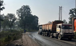 खदान से पूरी तरह से कोयला परिवहन हुआ ठप, खदान के बाहर सैकड़ो की संख्या में गाड़ियां खड़ी।