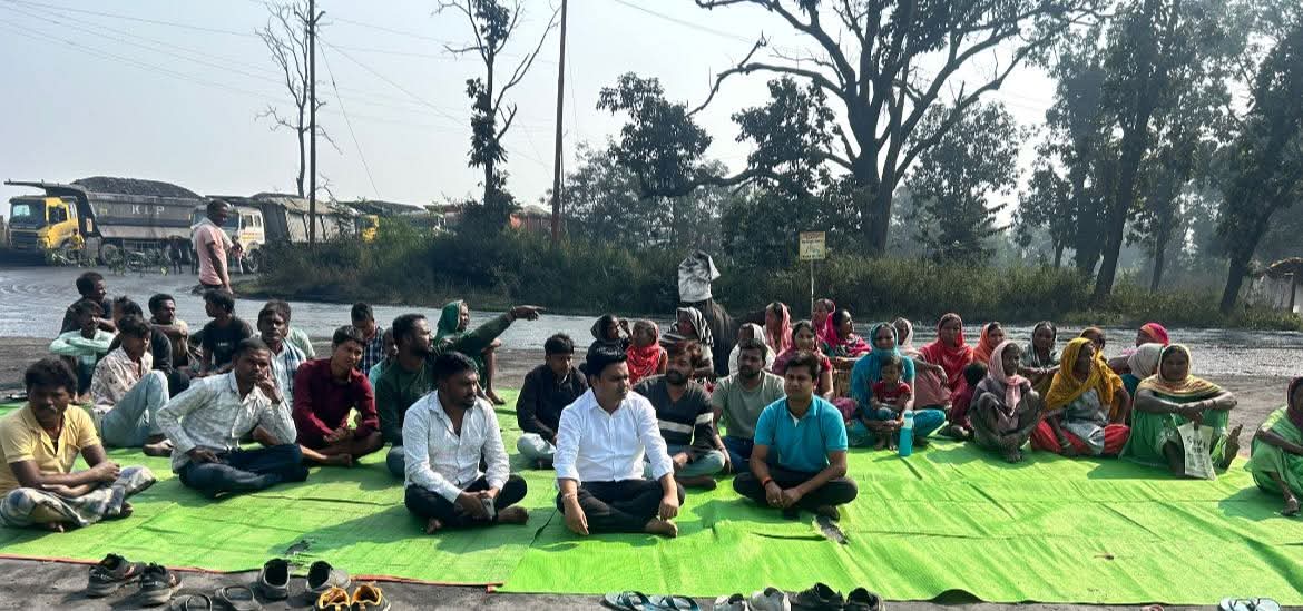 घरघोड़ा ब्लॉक अंतर्गत बारौद बिजारी का खदान बंद कर मांगे माने जाने तक सुबह से धरना देकर आंदोलन जारी है ।